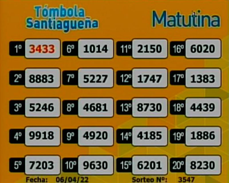 En la edición matutina, el primer premio fue para el 3433. En el Libro de los Sueños el 33 corresponde a «Cristo».