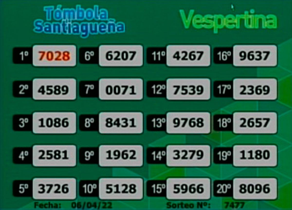 En el sorteo vespertino, el número premiado a la cabeza fue el 7028. El 28 en el libro de los sueños es “el cerro”.