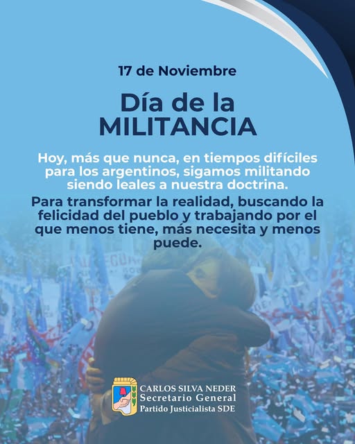 En conmemoración del Día del Militante Peronista, el vicegobernador y presidente provisional del Senado, Carlos Silva Neder, envió un «fraterno abrazo» a todas las compañeras y compañeros peronistas de todo el país.