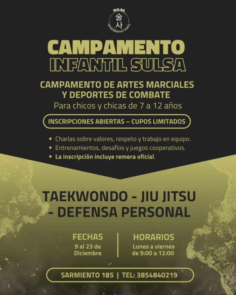 Sulsa – Centro Deportivo y Marcial presenta su primer Campamento Marcial Infantil, una propuesta innovadora que combina deporte, disciplina y diversión para niños y niñas de la provincia.