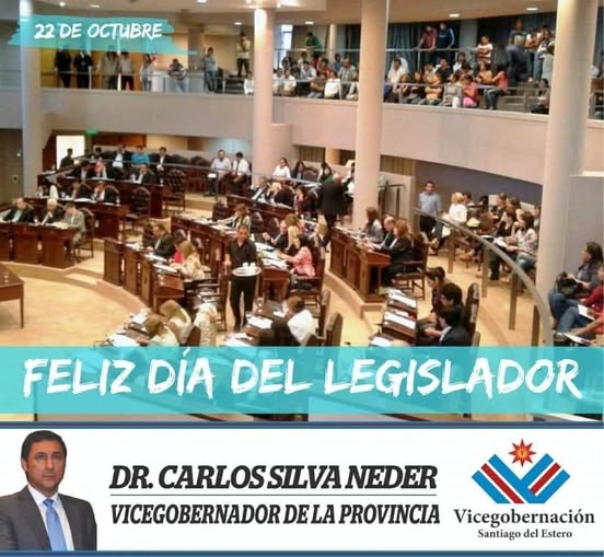 Con motivo del Día del Legislador, que se celebra cada 22 de octubre, el vicegobernador Carlos Silva Neder envió un afectuoso saludo a todos los legisladores nacionales, provinciales y municipales de Santiago del Estero.