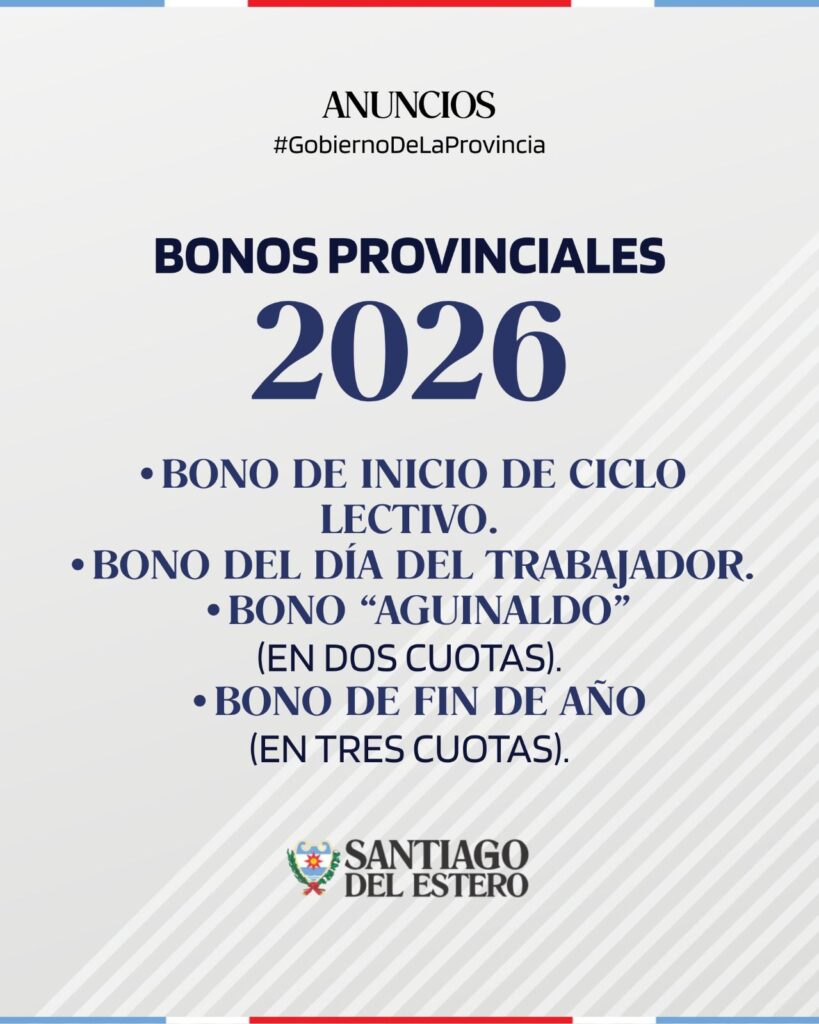 Por otra parte, también se confirmó que durante el presente año se mantendrá el mismo cronograma de bonos otorgado en 2025, que incluye: