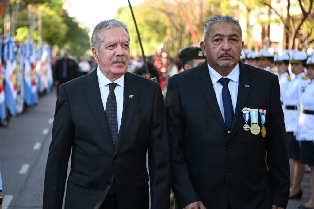 El gobernador Elías Suárez encabezó este jueves el acto central por el Día del Veterano de Guerra y los Caídos en Malvinas que se desarrolló en Plaza Sarmiento de la ciudad Capital.