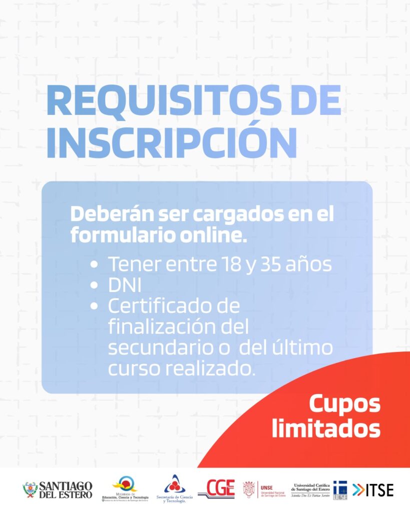 Podrán inscribirse personas con estudios secundarios completos y, en los casos en que no se haya finalizado ese nivel, deberán cursar la terminalidad de la educación secundaria en paralelo a la formación técnica.