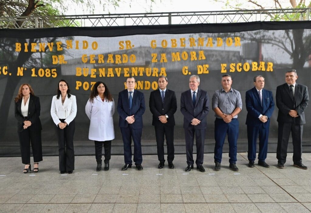 El gobernador Gerardo Zamora inauguró este viernes por la mañana las obras de refacción y ampliación de la Escuela N° 1.085 «Buenaventura Gómez de Escobar» de la ciudad de Pozo Hondo, cabecera del departamento Jiménez, donde además entregó viviendas sociales a familias de la zona.