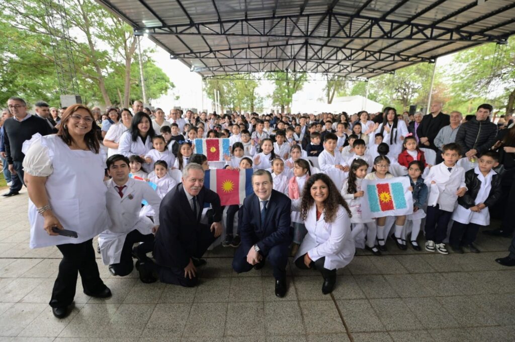 Zamora remarcó además las inversiones en infraestructura y desarrollo educativo en todo el territorio provincial. “La escuela es el lugar que nos une –agregó- que nos hace a todos iguales, con la posibilidad de la vocación de nuestros docentes para que nuestros hijos aprendan, se formen, tengan pensamiento crítico, capacidad innovadora, accedan a los desafíos a través del conocimiento de esta modernidad, que nos lleva a pasos muy acelerados, a cosas cada vez más tecnológicas más diferentes y desafíos permanentes que tenemos en este mundo. La educación es un pilar fundamental, porque invertimos mucho más de lo que nos exige nuestra Constitución provincial, que es un 30 % de nuestros recursos, de nuestro presupuesto en educación y venimos en los últimos años, y este no ha sido la excepción, de llegar y superar el 40 % de inversión educativa de nuestro presupuesto”.