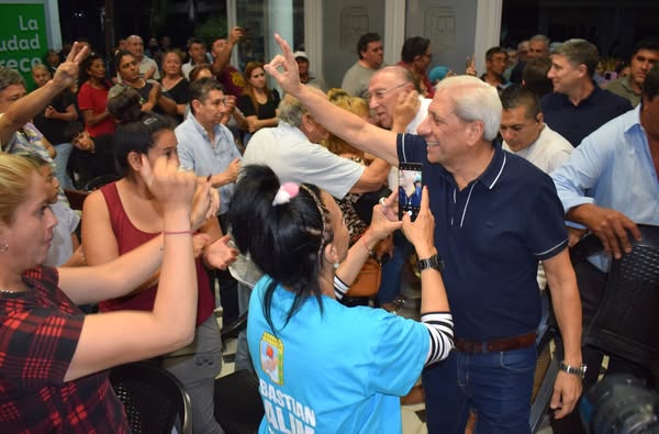 Estuvo acompañado por el intendente local Humberto Salim y los candidatos Marcelo Barbur (Diputado Nacional), Gerardo Montenegro y Sebastián Salim (Diputados Provinciales).