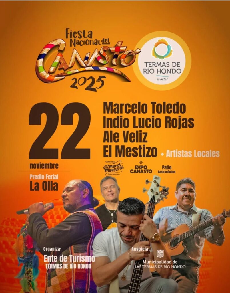 El evento contará con la actuación de artistas como Vislumbre del EstekoMarcelo Toledo, Orellana Lucca, Dani Hoyos, Ale Veliz, entre otros. Además, se realizará nuevamente el concurso “Manos Maestras”, con la competencia de artesanos que mostrarán sus piezas ante un jurado que determinará a los ganadores.