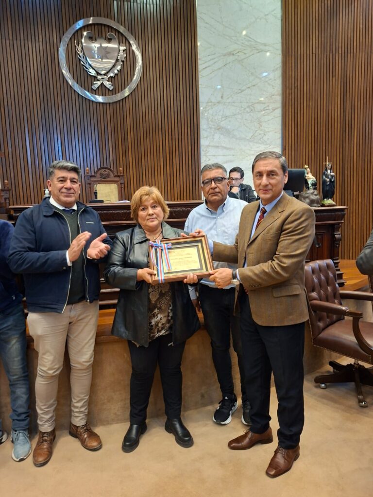 Asimismo, Estela Noriega (esposa) e hijos de “Chaca” Carabajal recibieron la declaración y plaqueta de reconocimiento a la trayectoria del exconcejal y exdefensor del Pueblo de la ciudad de La Banda, reconociendo su labor comunitaria, su contribución al deporte y su aporte a la cultura local como impulsor y promotor del festival Naciona de La Salamanca.