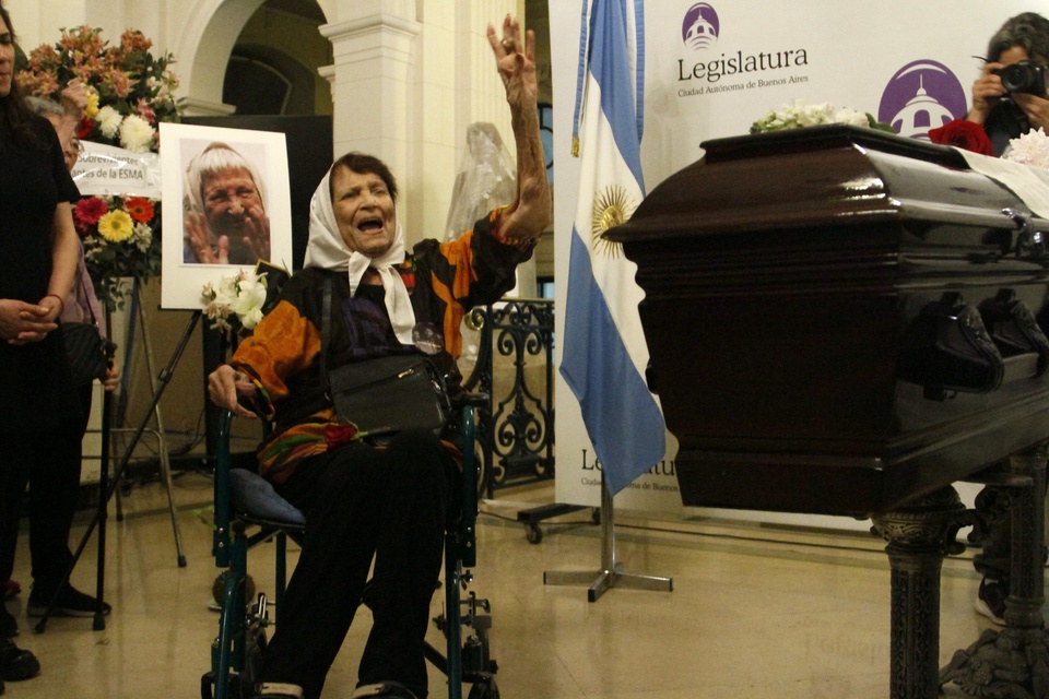 Este viernes a las 17 empezaron a acercarse militantes de derechos humanos para despedirla en el salón Perón de la Legislatura de la Ciudad de Buenos Aires. En la despedida –organizada por Victoria Montenegro, presidenta de la comisión de Derechos Humanos– no faltaron comentarios amorosos sobre Vera y canciones. Algunas de ellas entonadas por la Escuela Popular de Música, que funciona en la Casa Nuestros Hijos, sede de las Madres Línea Fundadora en la ex-ESMA.