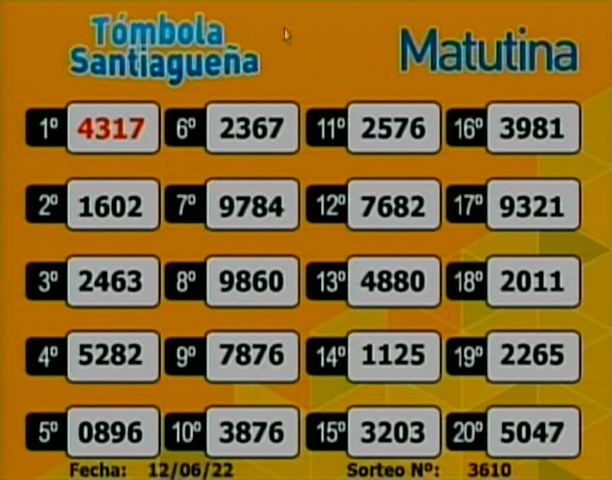 Cómo cada día, la Tómbola Santiagueña llevó a cabo la edición matutina de su sorteo.