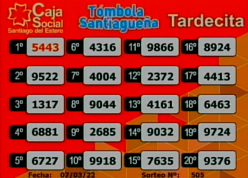 Tómbola santiagueña: los números de este lunes 7 de marzo