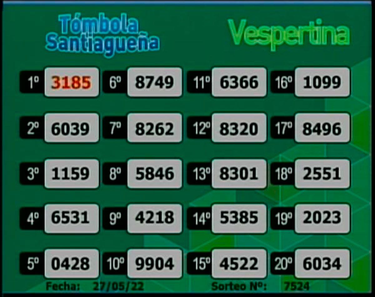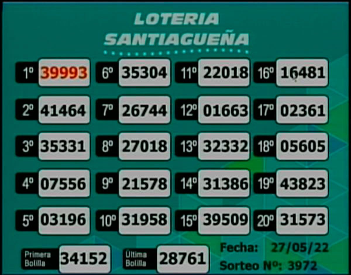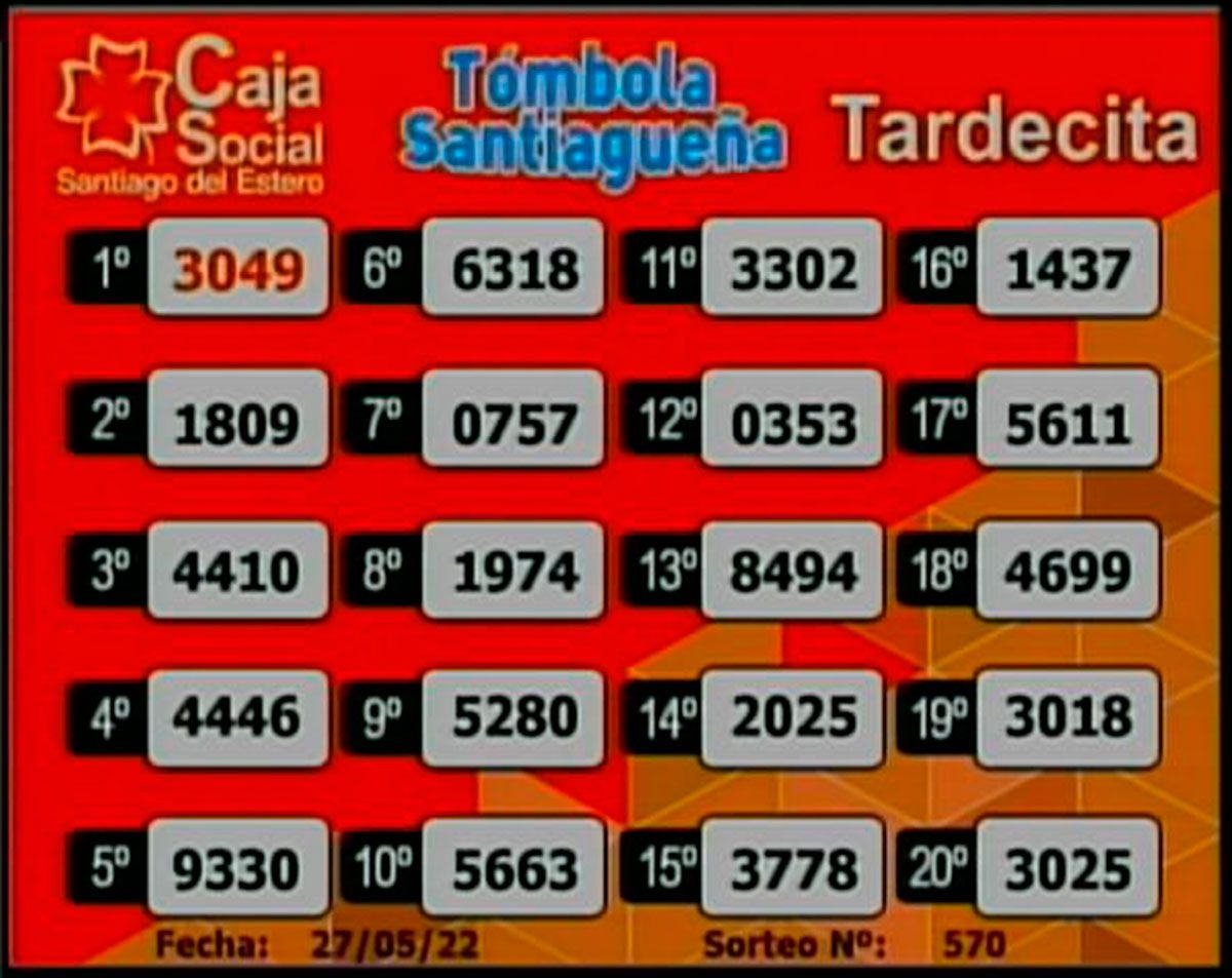 A continuación el listado completo de números ganadores en el sorteo de la Lotería Santiagueña: