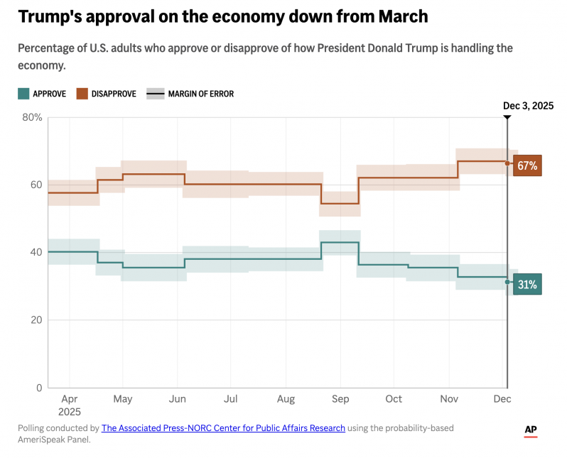 La encuesta de esta semana de la agencia AP y el NORC Center for Public Affairs Research señaló que solo el 31% de los encuestados aprueba el manejo de la economía de Trump. En contraste, el 43% aprueba su política de seguridad y el 38% su agenda migratoria. Todas las fortalezas de los primeros meses comienzan a languidecer, con la excepción de la política fronteriza, donde el respaldo todavía supera el 50%.